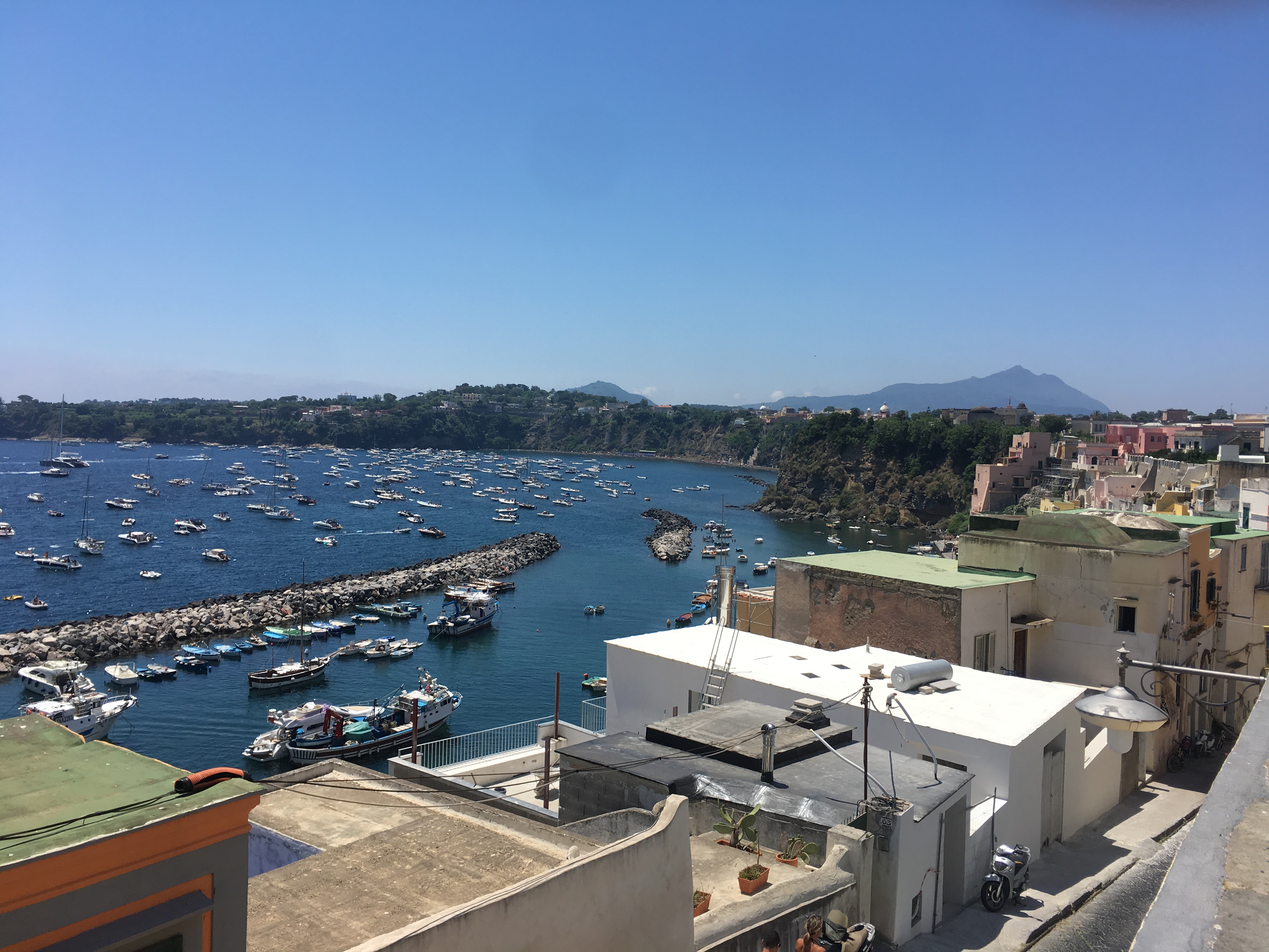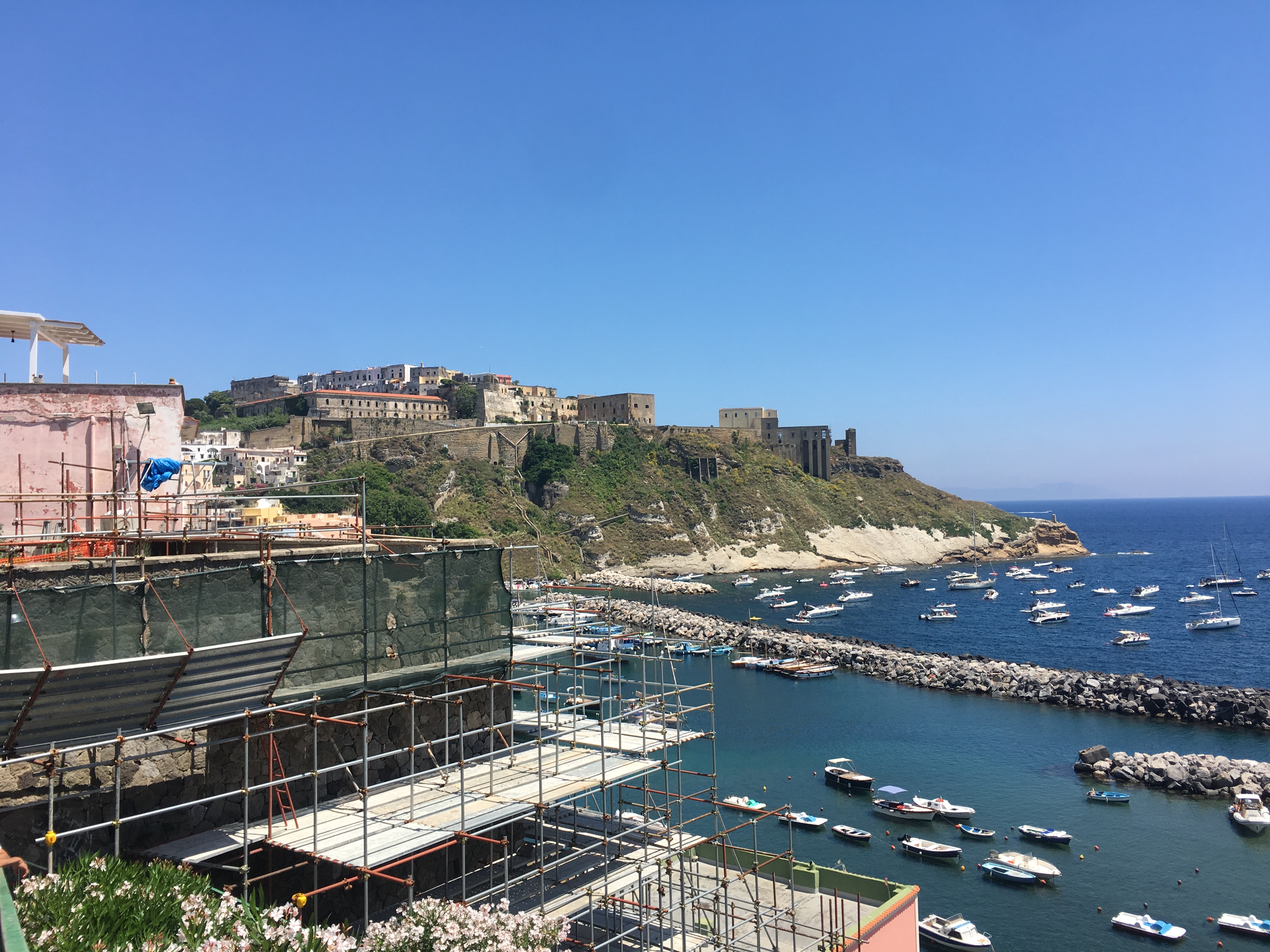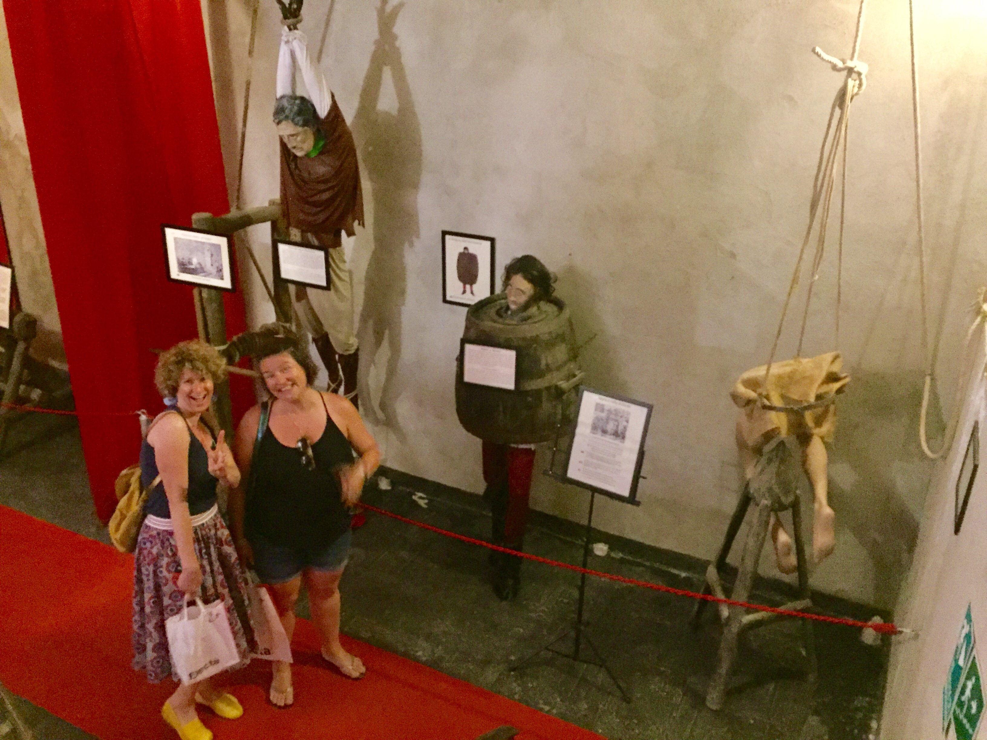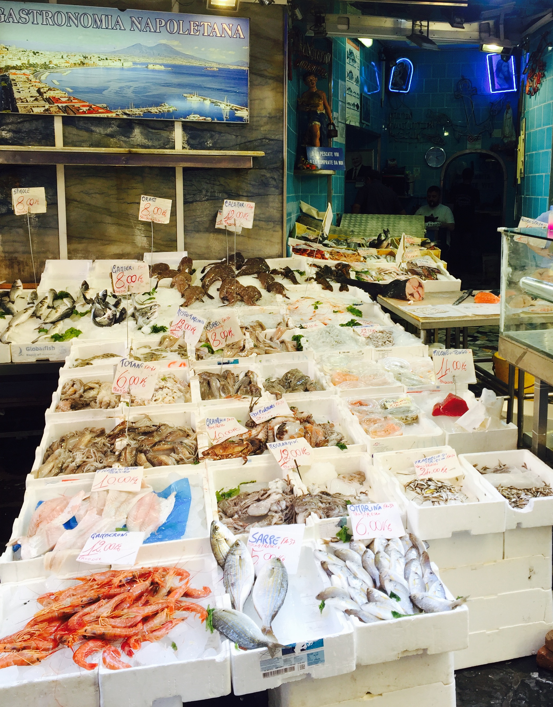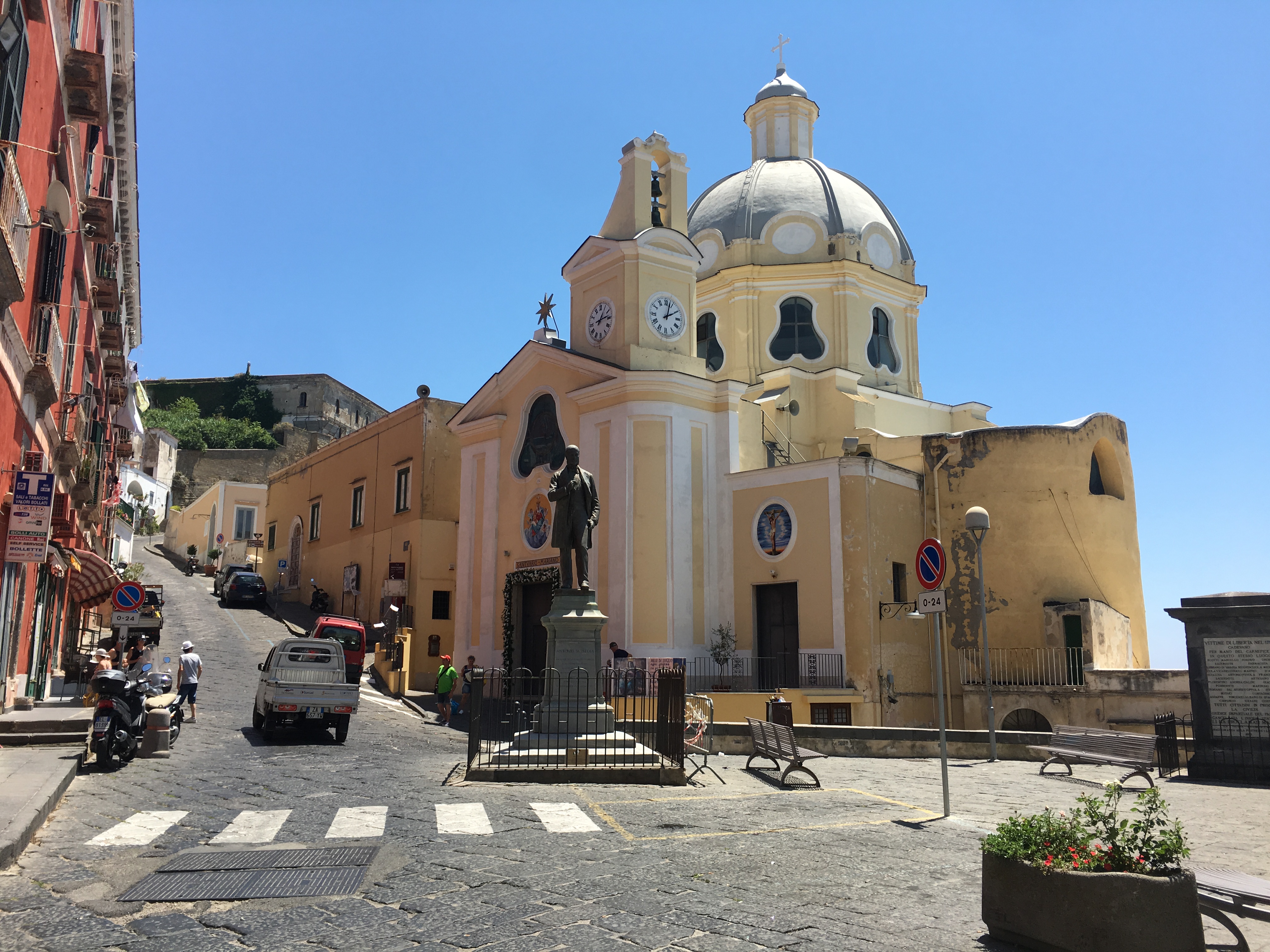 Pour le reste, nous avons flâné dans le quartier des Espagnols (mais je vous en ai déjà parlé), avec un portrait de Maradona tous les 10 mètres et des vendeurs de poissons à tous les coins de rue. On a également pris le bateau pour aller sur l’île de Procida, la plus petite des 3 îles au large de Naples (les deux autres étant Capri et Ischia). On est entré dans deux ou trois autres églises au hasard, toujours fabuleuses dans leur style baroque italien très modeste (ironie, rires et applaudissements). Et on a visité le musée de la Torture (via Santa Luciella Ai Librai), parce que ça nous faisait bien rire. Croyez moi, l’être humain est extrêmement inventif dès qu’il s’agit d’imaginer des moyens de faire souffrir d’autres êtres humains. On a d’ailleurs pris des notes, ça peut toujours servir (ironie, rires et applaudissements).