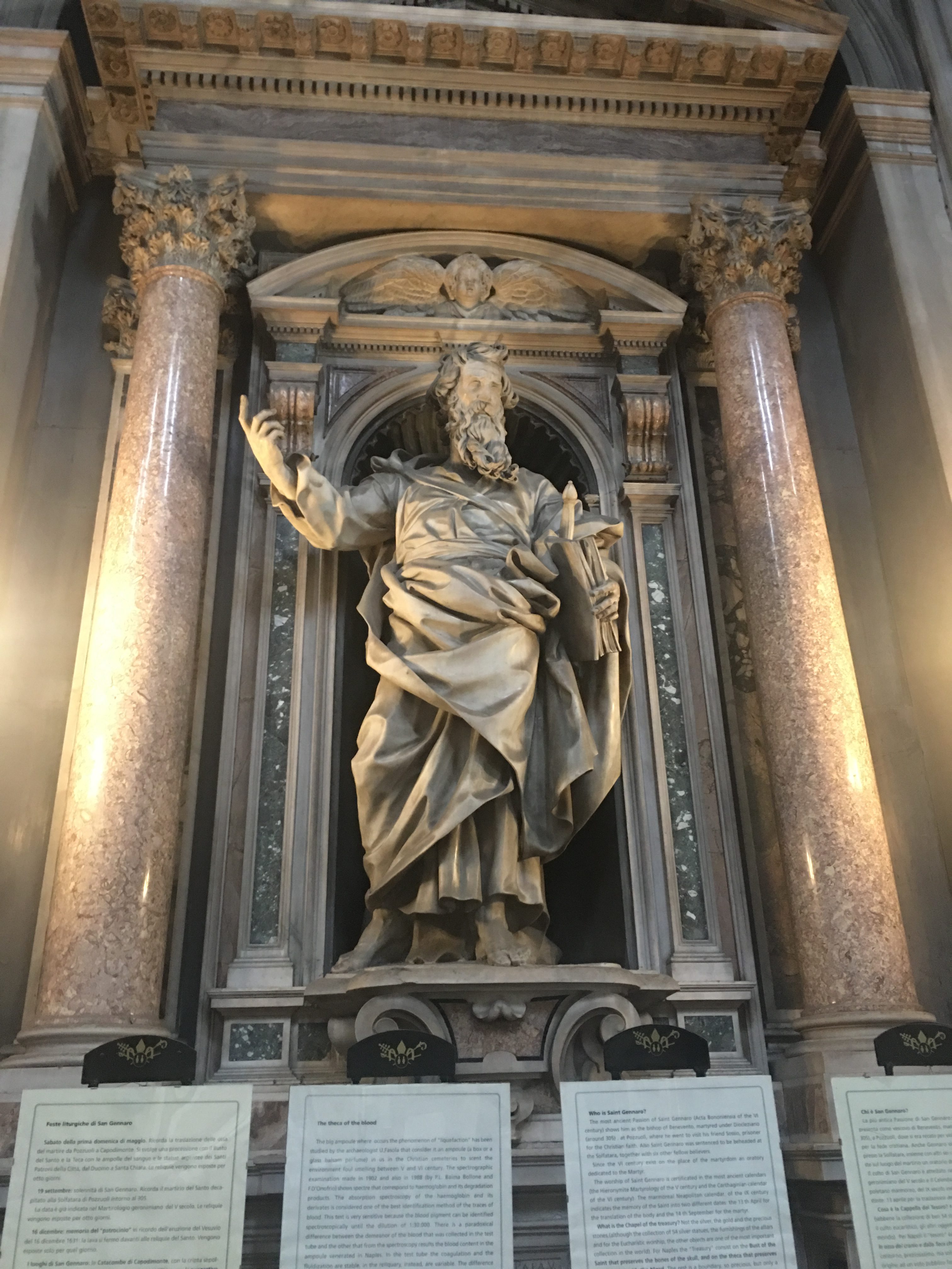 - la cathédrale Santa Maria Assunta (ou Duomo San Gennaro), siège de l’archidiocèse de Naples et dédiée à l’Assomption de la Vierge Marie et surtout célèbre pour ses reliques de Saint Janvier (d’où son nom, CQFD).