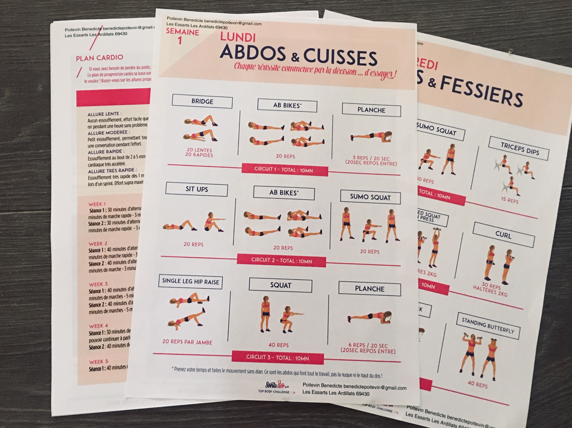 Trois jours en fait, mais répartis sur la semaine, à suivre un programme de « renforcement musculaire » comme ils disent. En gros 30 minutes d’exercices de pilates, mais à la maison et à 6 du mat pour ne pas être dérangée par les nains qui se foutent de ta gueule : « mais maman, tu vas être trop musclée à la fin ! ». T’inquiète ma chérie, je suis large avant d’avoir la carrure de Conan le Barbare (spéciale dédicace pour toi Adi). Globalement, j’ai des courbatures de l’autre monde alors que je pensais ne pas trop m’être avachie depuis mon 7e mois de grossesse. Au temps pour mes illusions. Le programme c’est Top Body Challenge, avec la promesse « d’obtenir un corps au top en moins de 12 semaines« . J’y crois moyen, mais comme ça ne peut franchement pas faire de mal… Je vous tiendrai informé(e)s des progrès réalisés (ou de l’abandon pur et simple du truc, c’est pas totalement inconcevable).