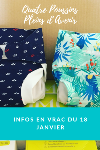 Au chapitre zéro déchet, nous avons depuis ce matin les couches lavables pour Léonard. Je ne vous cache pas que je tremble un peu du bout du nez, mais bon, il est vrai que niveau kilos de poubelles en moins et économies réalisées, elles se posent là. Et elles sont si jolies. J’ai presque envie de laisser num4 à poil en permanence histoire que tout le monde les voit (ses couches hein, pas ses fesses). Je sais, on est en plein hiver, donc ça non plus c’est pas jouable. Mais ça sera tellement chouette cet été !